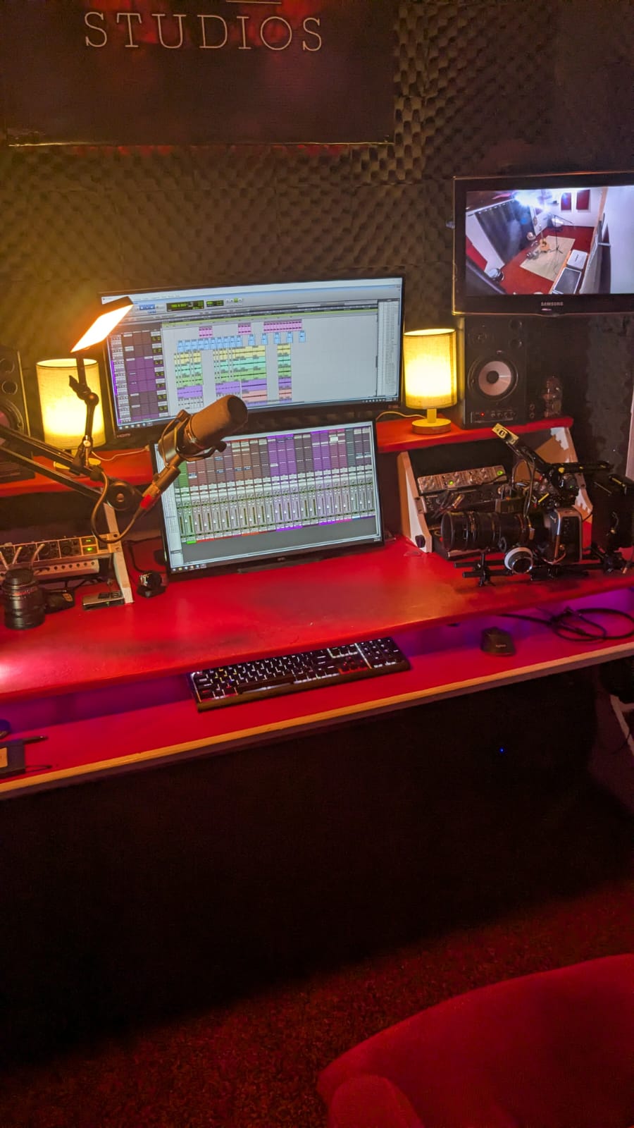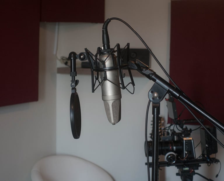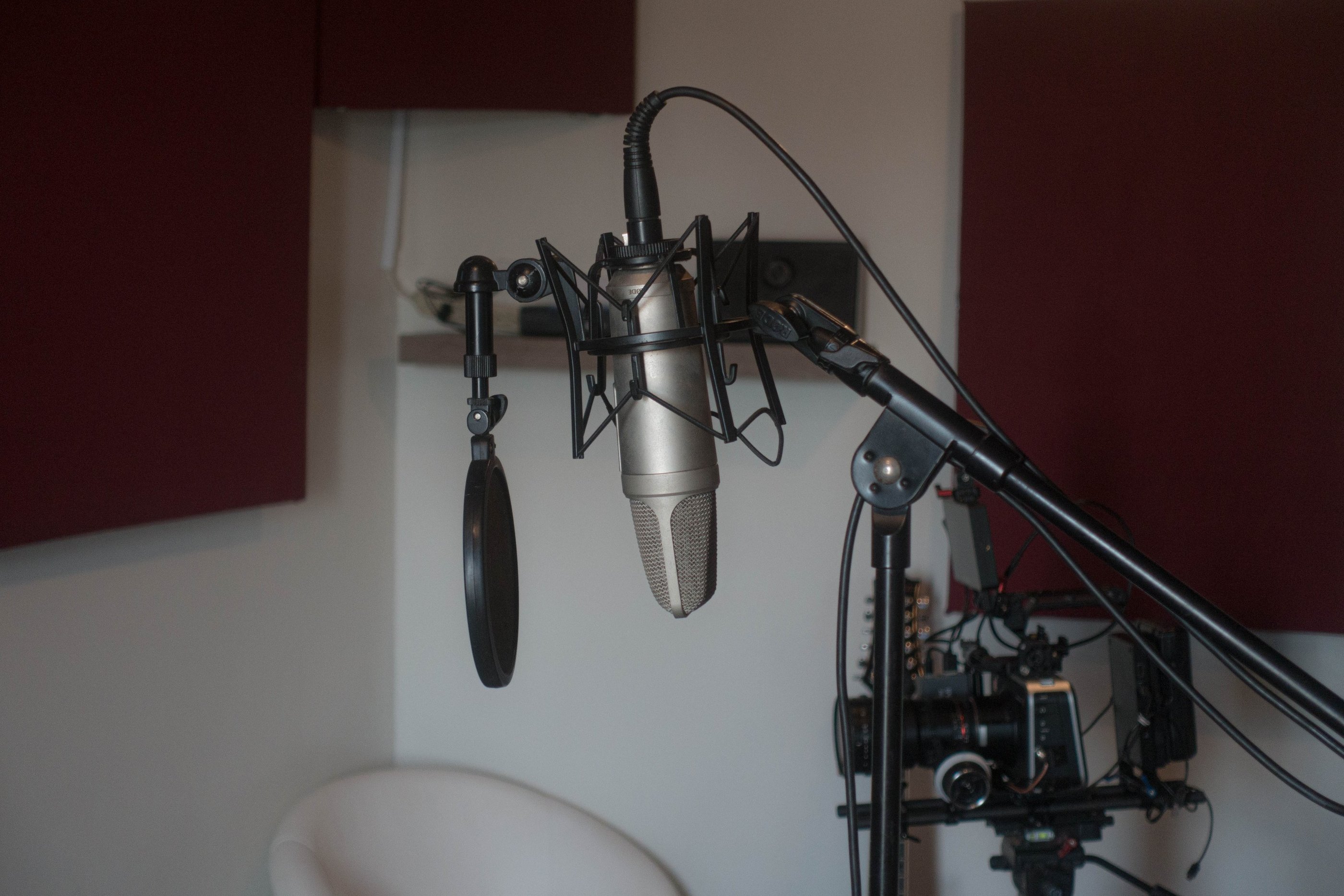 Contamos con amplio espacio para la grabación de audio con los mejores micrófonos de alta gama.